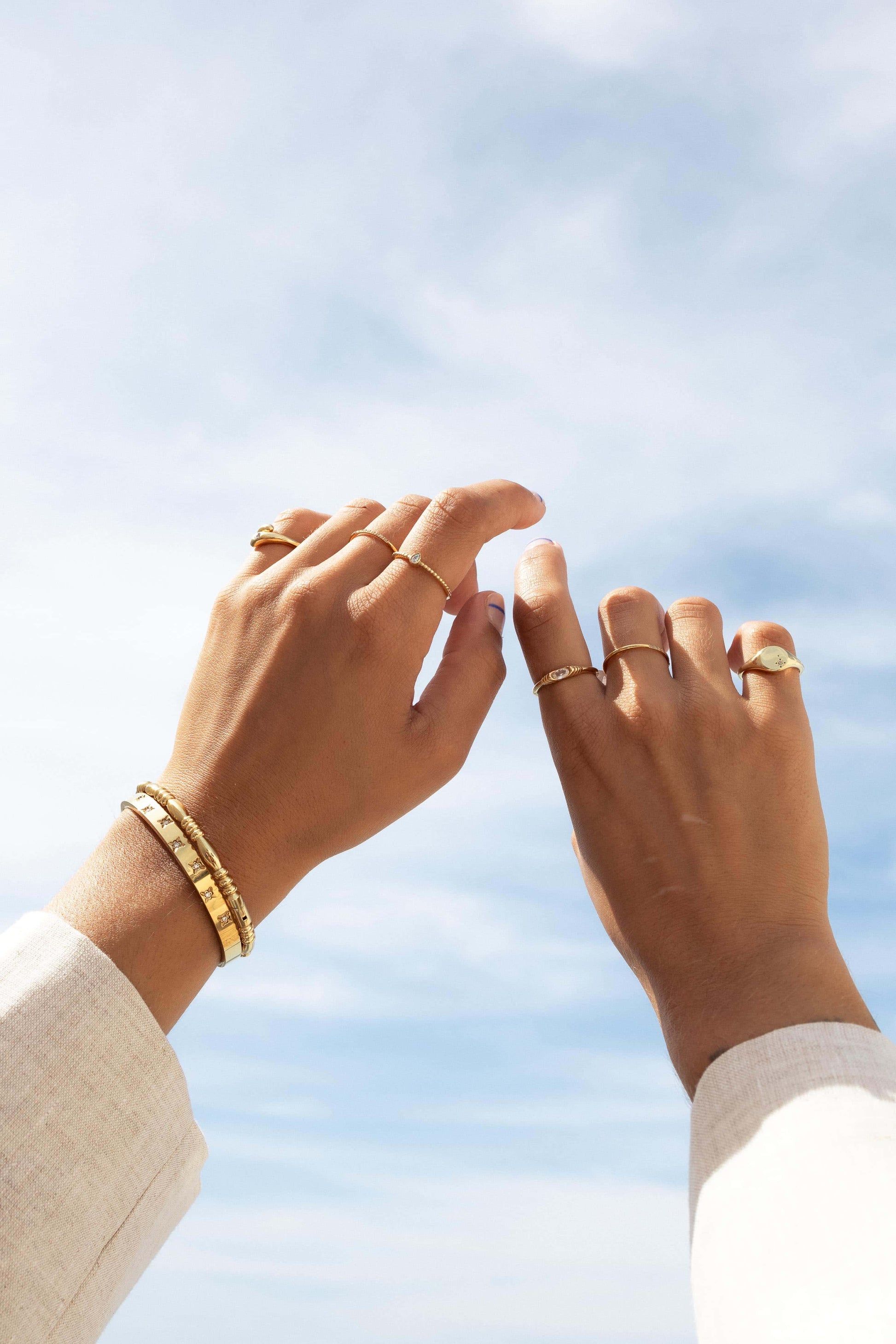 Material: Aço inoxidável com banho de ouro 14k + Zircónia branca